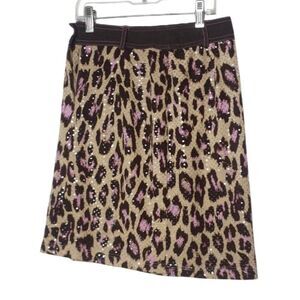 Ivu Janey Womens Leopard Print Skirt Size 4 Sequin Fairycore Y2K Trendy Glam