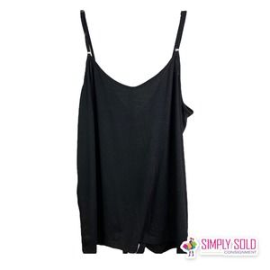 Ivvic Women's Spaghetti Strap Sleeveless Shirt Black Boho V-Neck Stretch Button XXL