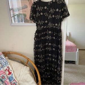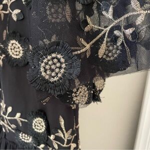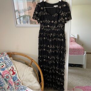 Ivy City Co Athena Floral Embroidered Tulle Maxi Dress in Black Size Medium