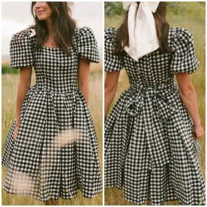 Ivy City Co Black Gingham Puff Sleeve Dress | Cottagecore Picnic Dress 2 XS NWT