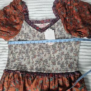 Ivy City Co Prairie Milkmaid Boho Tiered Midi Dress Fall Floral Size Large Emily