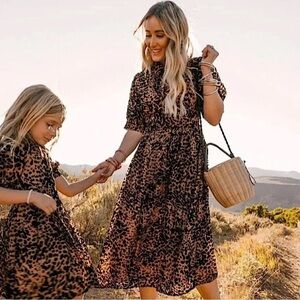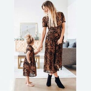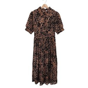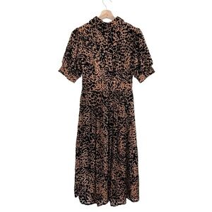 Ivy City Co The Anna Dress Velvet Embossed Leopard Midi Brown Black XS