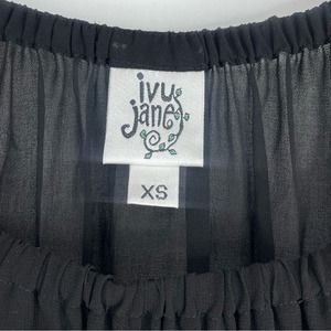 Ivy Jane Black Boho Top Bell Sleeves Sheer Lightweight Design Embroidered XS