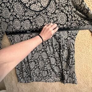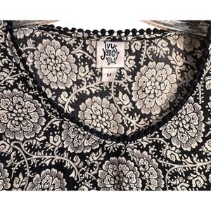 Ivy Jane Black & White Boho Y2K Ruffle Babydoll Retro Tunic Sz M Flutter Sleeves
