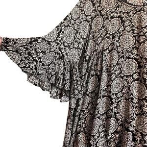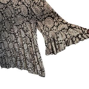 Ivy Jane Black & White Boho Y2K Ruffle Babydoll Retro Tunic Sz M Flutter Sleeves Festival Western Rodeo Concert Bohemian Vacation Hippie