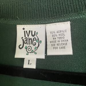 Ivy Jane Dark Green Wool Blend Short Sleeve Cardigan Orange Buttons Size Large