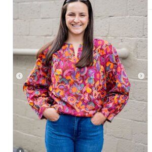Ivy Jane Poetry In Motion Blouse Balloon Sleeves Fall Floral Colorful Boho Sz L