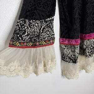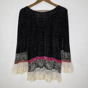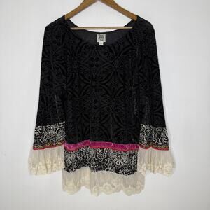 Ivy Jane Shirt Womens Large Black Velvet Burnout Lace Tunic Boho Made USA