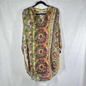 Ivy Jane Tunic Women’s XL Sheer Twist & Shout Boho Peasant Half Sleeve Oversized
