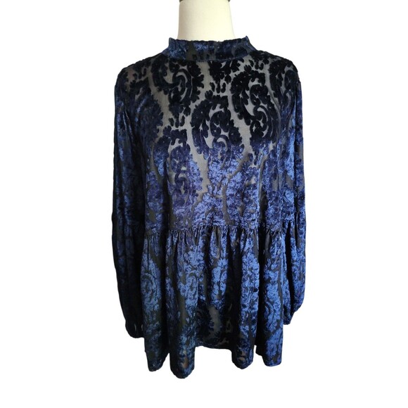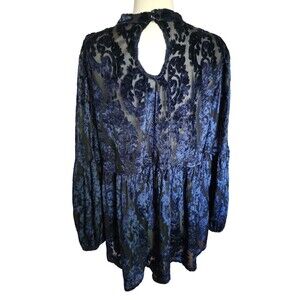 Ivy Jane Whimsigoth Velvet Burnout Blouse Womens XL Navy Sheer Dark Romantic