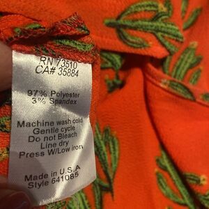 Ivy Jane ladies small Bright orange Top with Green cactus Pattern