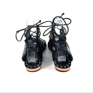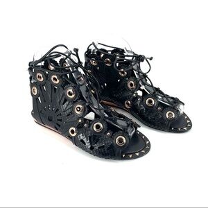 Ivy Kirzhner Barcelona Black Leather Low Gold Wedge Cutout Flat Sandals