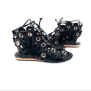 Open toe - Snake embossed - Grommet accents - Cutout detail