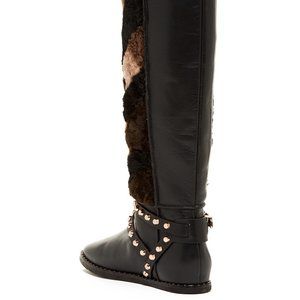 Ivy Kirzhner New Luxe TALL Hidden Wedge Stud Leather & Shearling Boot BLACK πHP