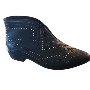 Ivy Kirzhner Santa Cruz Studded Festival Ankle Boot Black Leather 8M. These are still new. I wore them no longer than an hour. So they do have some scuffing on the sole* bottom. The size shows 8, but they fit more like a 7.5