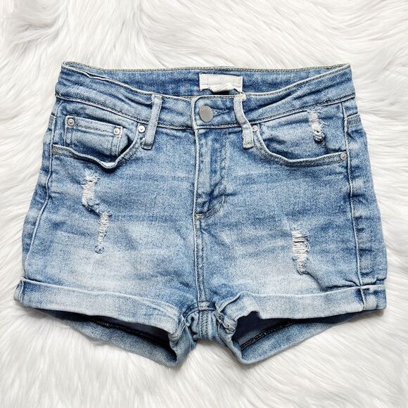 Ivy + Main Distressed Cuffed High Rise Shorts Light Denim Wash Size 1