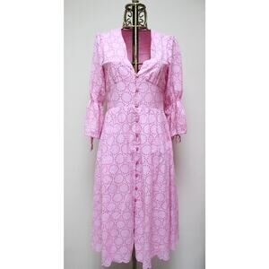 Ivy & Oak Pastel Pink Broderie Anglaise Eyelet Scallop Bell Sleeve Midi Dress 36