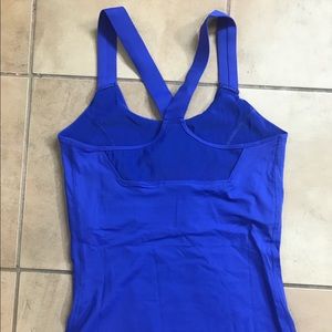 Brand New with tags gorgeous cobalt color. Built in bra with mesh detail on this back. Sweat wicking, breathable, quick drying, ventilation mesh panel.
