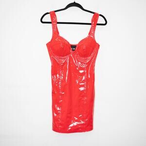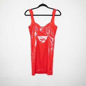 Ivy Park Adidas Ivy Heart Red Latex Mini Dress Faux Leather Vinyl Bustier SZ S