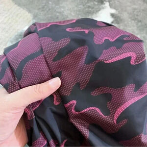 Here’s an awesome windbreaker jacket, kinda like a bomber jacket cut by Ivy Park. The size tag is missing but the material tag is still attached and shows it’s a womens size small. Great condition! The Ivy park logo on the hem shows a little wear as shown. Love the fun pink and black color camo. Perfect for working out in or for everyday wear. :)