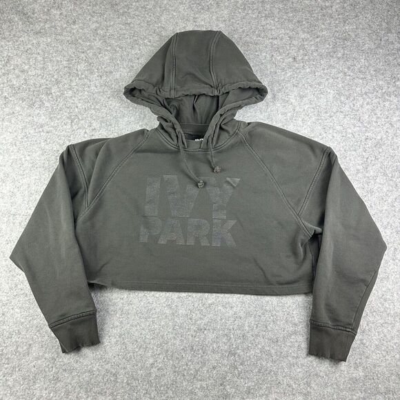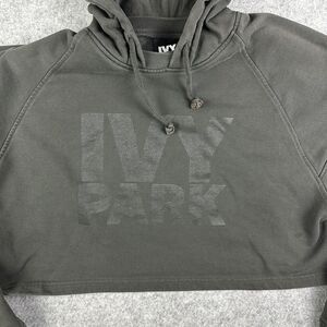 Ivy Park Cropped Hooded Sweatshirt Womens M Gray Oversized Streetwear Hoodie*. Condition is "Pre-owned"