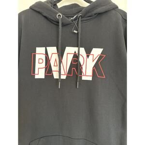 Ivy Park Layered Logo Graphic Hoodie Oversized Sweatshirt Black Sz M Streetwear