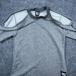 Ivy Park Sweatshirt Women Medium Grey Cut Out Beyonce Cold Shoulder Short Sleeve