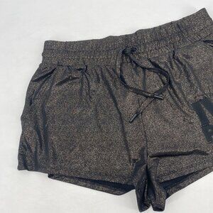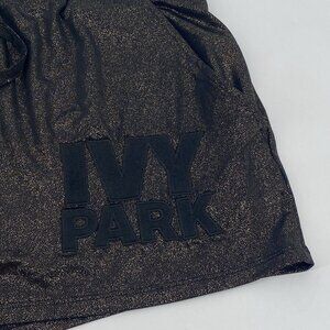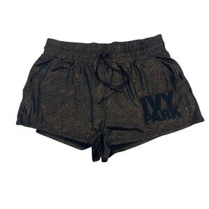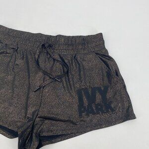Ivy Park Womens M Gold Black Metallic Shorts Spellout Logo Athlesiure Drawstring