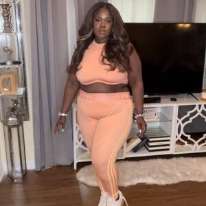 Includes mesh top 2x (new without tag due to needing to be laundered to remove stain) and Ivy Park banded leggings (1x) (NWT) Top and legging are a tight fit.