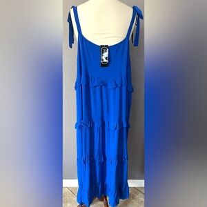Ivy Street Blue Tiered Maxi Dress Size 2X Ruffled Layered Sleeveless Beach Boho