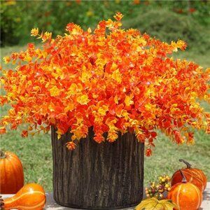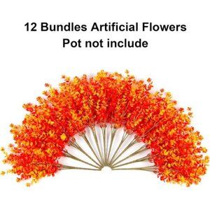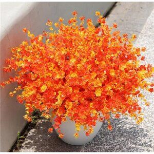 🧿PACKAGE : There are a total of 12 pieces of artificial fall orange outdoor plants. Lush fake flowers, accompanied by stems filled with greenery, offer a refreshing touch of nature.