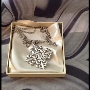 Grey faux crystals set in cross pendant 21/2" x 2 1/2", chain is 20"