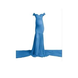 Iwemek Maternity Dress Mermaid Off Shoulder Slim Fit Chiffon Gown Sky Blue New M