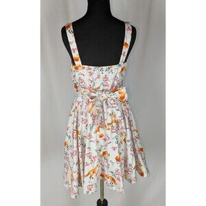 White, cute fox and floral print, sweetheart neck, sleeveless, tie waist, zipper back, fit & flare dress