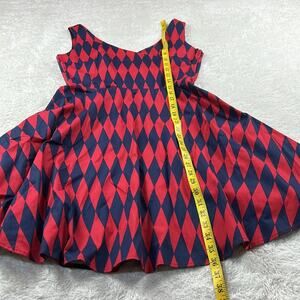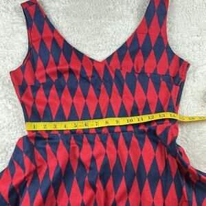 Ixia made in USA harlequin patterned red and blue diamond fit and flare dress, L