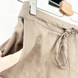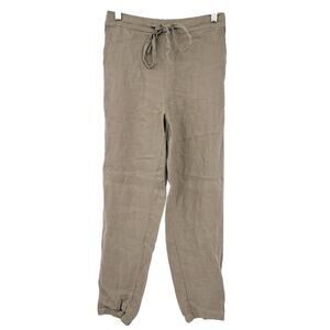 Iximo Womens Beachy Lounge Lagenlook Tapered Leg 100% Linen Pants Size S Khaki
