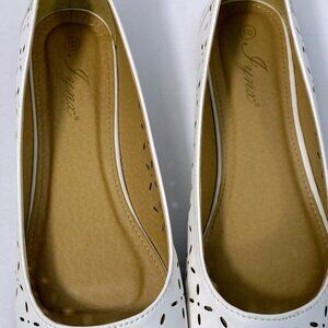 Iynx Betty Flats Womens Size 10 White Ballet Round Toe Cut Out Slip On Shoes NEW