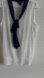 Chic cream sleeveless blouse. Features a stylish black bow tie. Perfect for versatile styling.