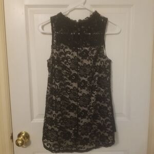 iZ Byer Sleeveless Flare Top Black Floral Lace Overlay Nude Lining Size Small