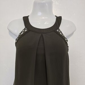 Iz Byer - Olive Crochet Sleeveless Shift Mini Dress