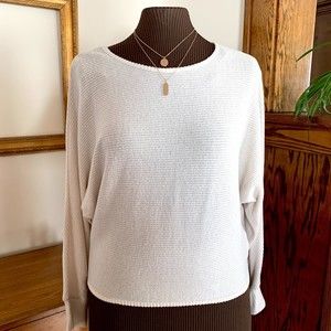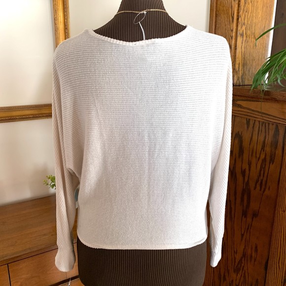 Iz Byer Rib Knit Dolman Sleeve Cream Sweater w/Necklace NWT Sz M