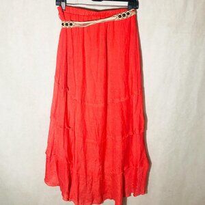 Iz Byer skirt high low maxi belt new without tags pink layered rayon medium READ