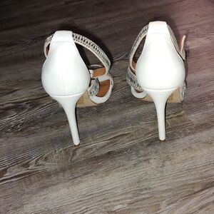 Izabella Rue Gwenyth Heels White heels with rhinestone detailing on band