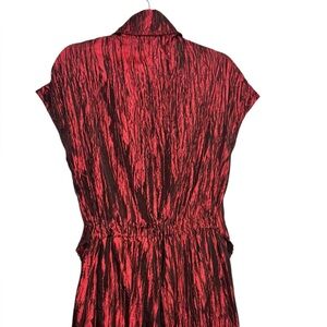 Izayla Wide Leg Short Sleeve Red Black Button Front Crinkle Tie Front Jumpsuit S