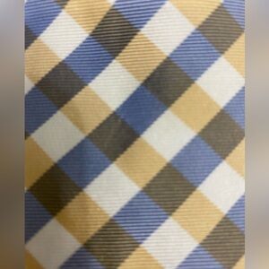 Izod 100% Silk Preppy Gold Yellow Blue White Plaid Mens 59” Long Neck Tie