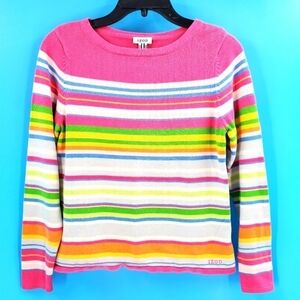 Izod 100% cotton crewneck rainbow stripe sweater PM
