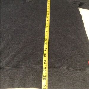 Mens Preowned IZOD Mock Neck 1/4 Zip Shirt. Size M.Good condition. No stains or tears. It is a blue Heather color. The pictures look more gray. It is a heavyweight cotton blend material. Measurements are in pictures.