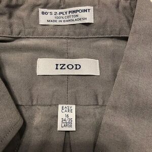 Izod 80's 2-Ply Pinpoint 100% cotton gray long sleeve dress shirt Large
