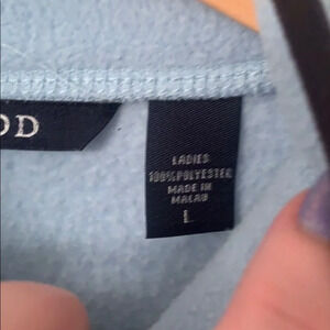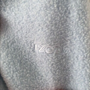Izod blue and black zip front fleece. Izod logo on the left sleeve. Size Large. In good used condition! Measurements taken with fleece lying flat and are approximate.