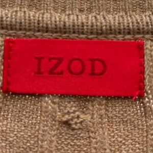 Izod Beige Cable Knit Sweater Size Large V Neck Long Sleeve